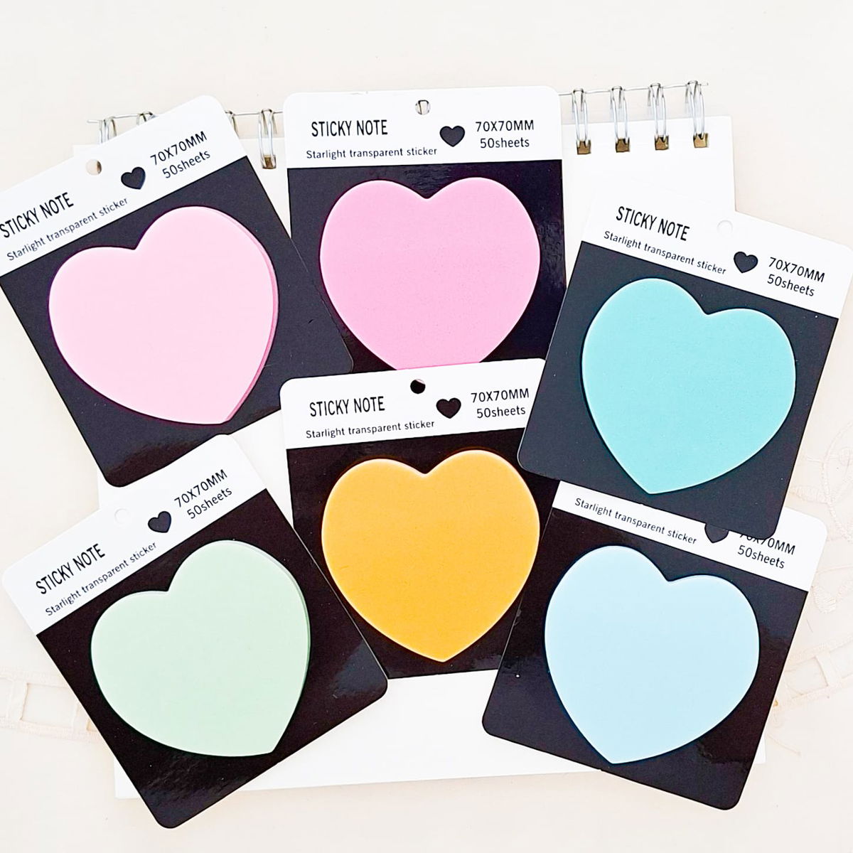 Notas adhesivas transparente corazon