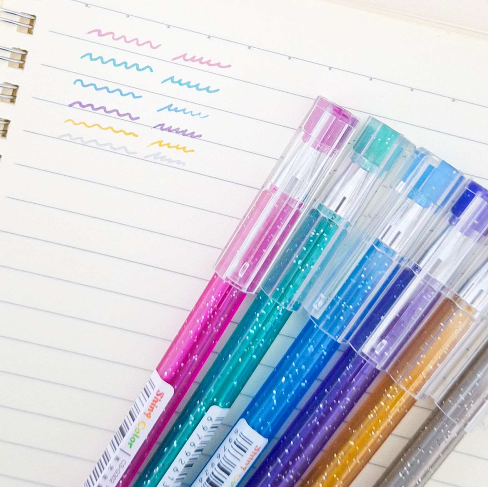 Lapiceras con glitter x 6 unid